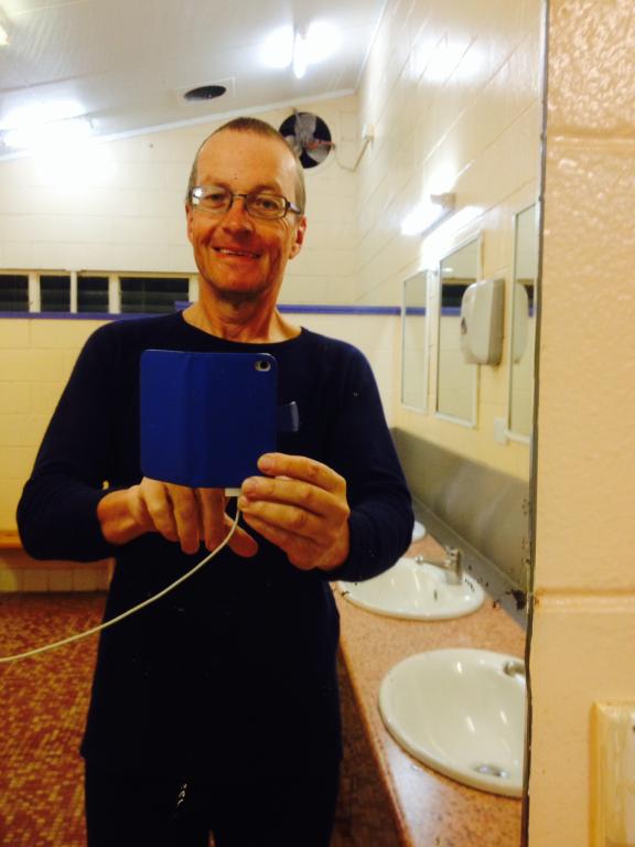 After tea and toast at the town’s hip, Mumfunky cafe with the other Sunday breakfast crowd, I took myself off to the library, which unfortunately is shut on Sundays. Oh well, stocked up on a few supplies at the local supermarket then peddled back to camp before the thunderstorm hit. The only place to go where it’s dry and warm is the laundry. I charge my devices, no solar power today, and write another postcard to mum who doesn’t use Facebook.