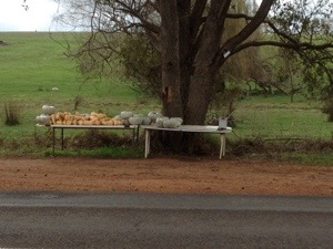Roadside stalls sell fruit, nuts and veggies using an honour system, I like that.