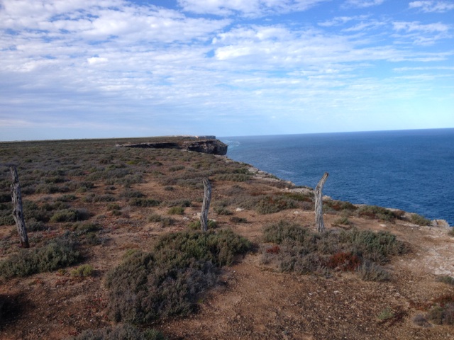 It quickly became obvious I wasn’t able to ride the track, instead I had to wheel my bike for 2 km until I came to what I thought was the T junction. Turning left for a further 4 km near the edge of the cliffs, I got a little cut up and scratched as the track gave out in places. I seemed to have gone further than the 3 km and it was getting late into the afternoon. Soon I would need to think about setting up camp. I questioned the merits of going further however, I had come this far. Scanning the horizon seeking out a sign, I’m sure I could make out the fence posts so I plodded on. Yes, I could see them now, but not much further. The sense of anticipation was beginning to build. Would the famed ‘Nullarbor touring cyclist log’ be there full of unique cycling wisdom for those who seek the open road or am I on some wild wide-eyed cyclist fantasy?