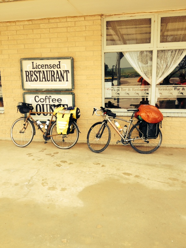Where did the Nullarbor go? I asked myself as the hills returned, edged with dry open woodland country. Although not dry for long, the clouds rolled in and the heavens opened up. The wind turned ugly and I knew any trip off the highway now would constitute a mud bath. I pushed on in the rain rolling into Nundroo Roadhouse soaking wet, where I met Hero, a young Japanese guy traveling in the opposite direction.