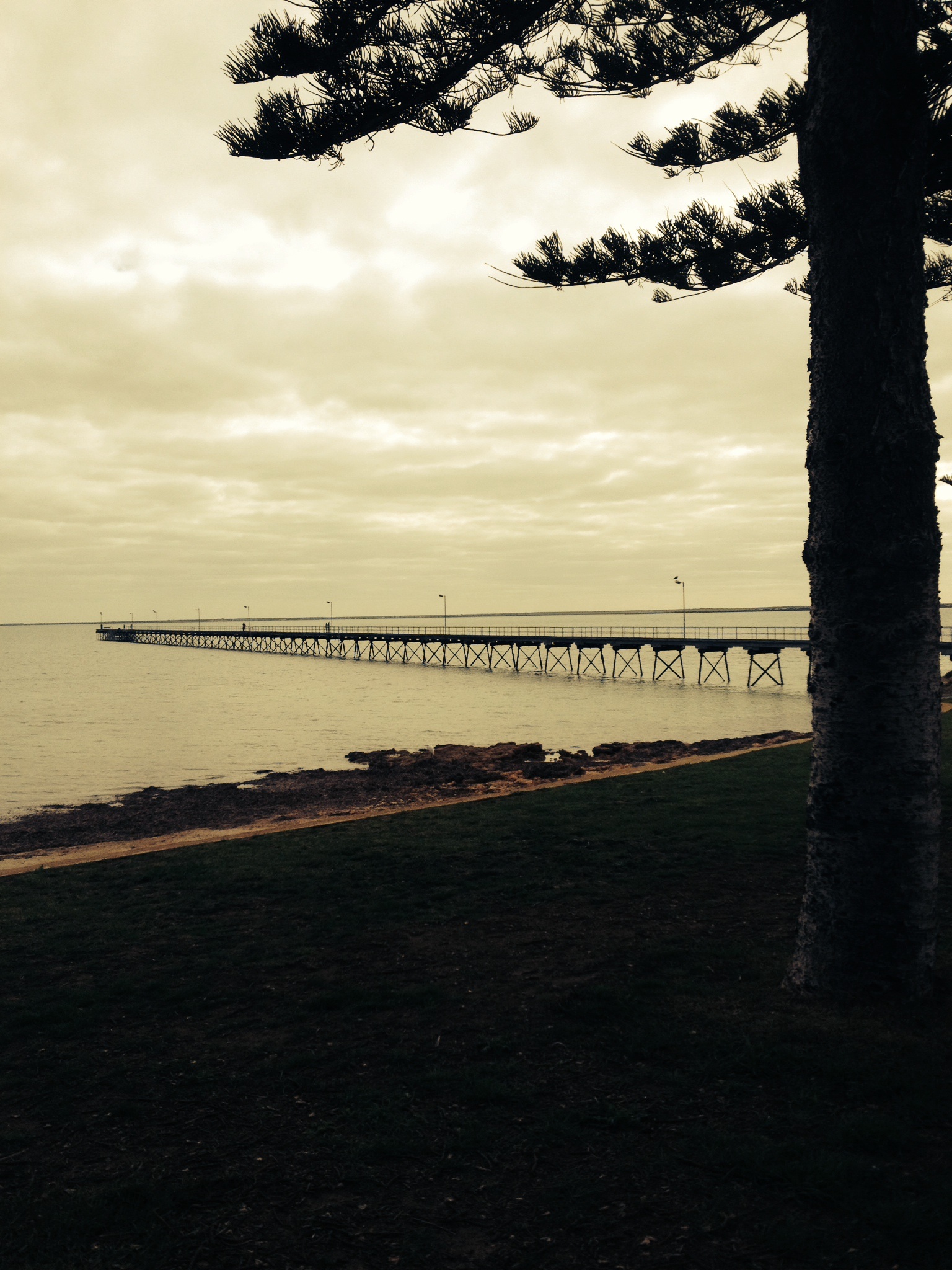02082014 2Officially Ceduna is the end of the Nullarbor Plain. I bought a bumper sticker to prove it from the lady at the information center. I then took a photo of the underwhelming giant oyster. Apparently, Ceduna is the oyster capital of Australia, who would have thought! I then cruised down to the foreshore for a look at the pier. There’s not a lot happening on a slow Saturday afternoon.