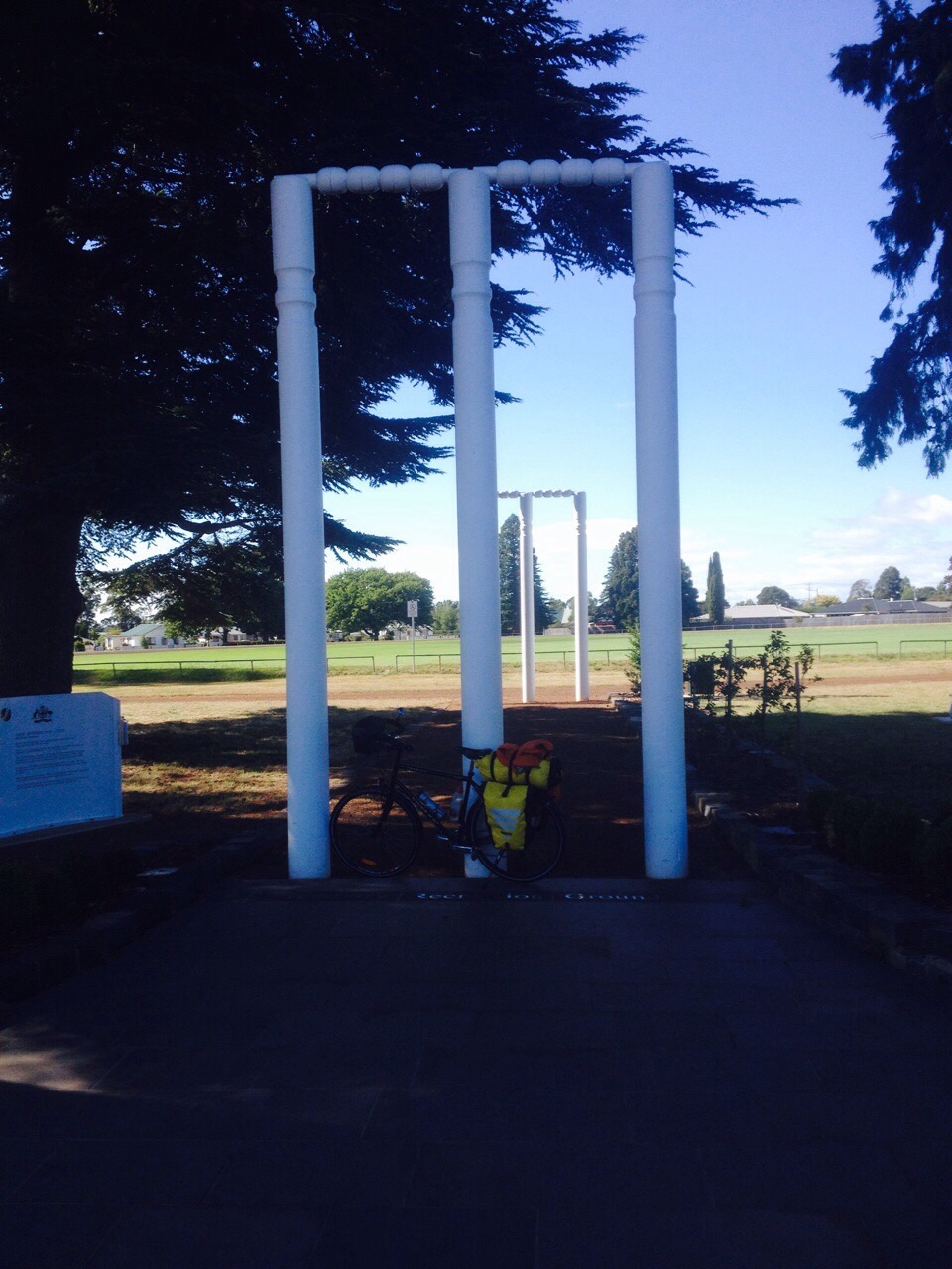 As much as possible we took back roads, they tend to be more interesting and have far less traffic. We followed the road to Exton, notable for its pig farm, on to Westbury which proudly proclaimed its status as “Tasmania’s Tidy Town winner 2015”. Westbury’s oval boasted the largest set of cricket stumps I have ever seen, in honour of a local boy made good, Jack Badcock who was a champion cricketer. He made his debut for Tasmania at age 15 and went on to play with Sir Donald Bradman’s Invincibles.