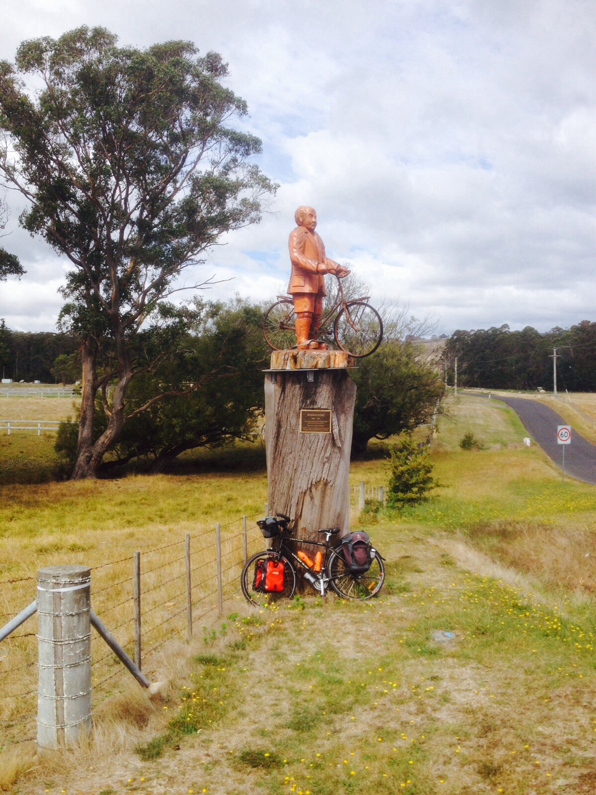 We took the downhill backroad into Railton past the monument to one Norman Sykes. A cyclist and philanthropist who as a legacy donated 15 hectares of native bushland to the young people of Railton.