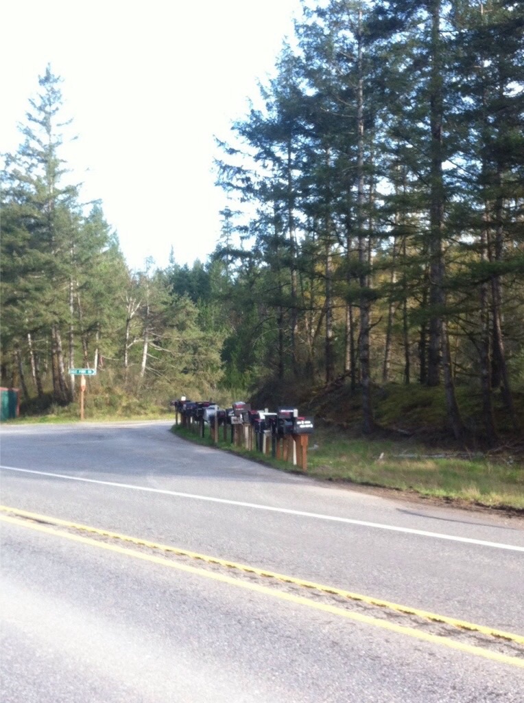 Out on the road, we ride single file, Therese in front. We use caution and our mirrors as the shoulder often disappears, especially when you need it most. The roadside verge regularly has a deep channel cut along the right-hand side, sometimes it’s scary in between a rock and a hard place. Many of the cars are large 4WD that sound quite ferocious, despite that we have rarely had grief from drivers. After riding into some steep hillsides with darkening skies, we rolled into the tiny clam and oyster fishing hamlet of Lilliwaup where I sent Mum a postcard.