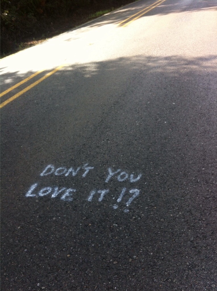 The ride up Seven Devils Road was full of pain and suffering, befitting its name. Each devil is named after a particularly sharp and steep climb, accompanied sometimes by cryptic messages written on the roadway: “Don’t you love it!?” I counted at least eight but who gets to quibble with the devil?