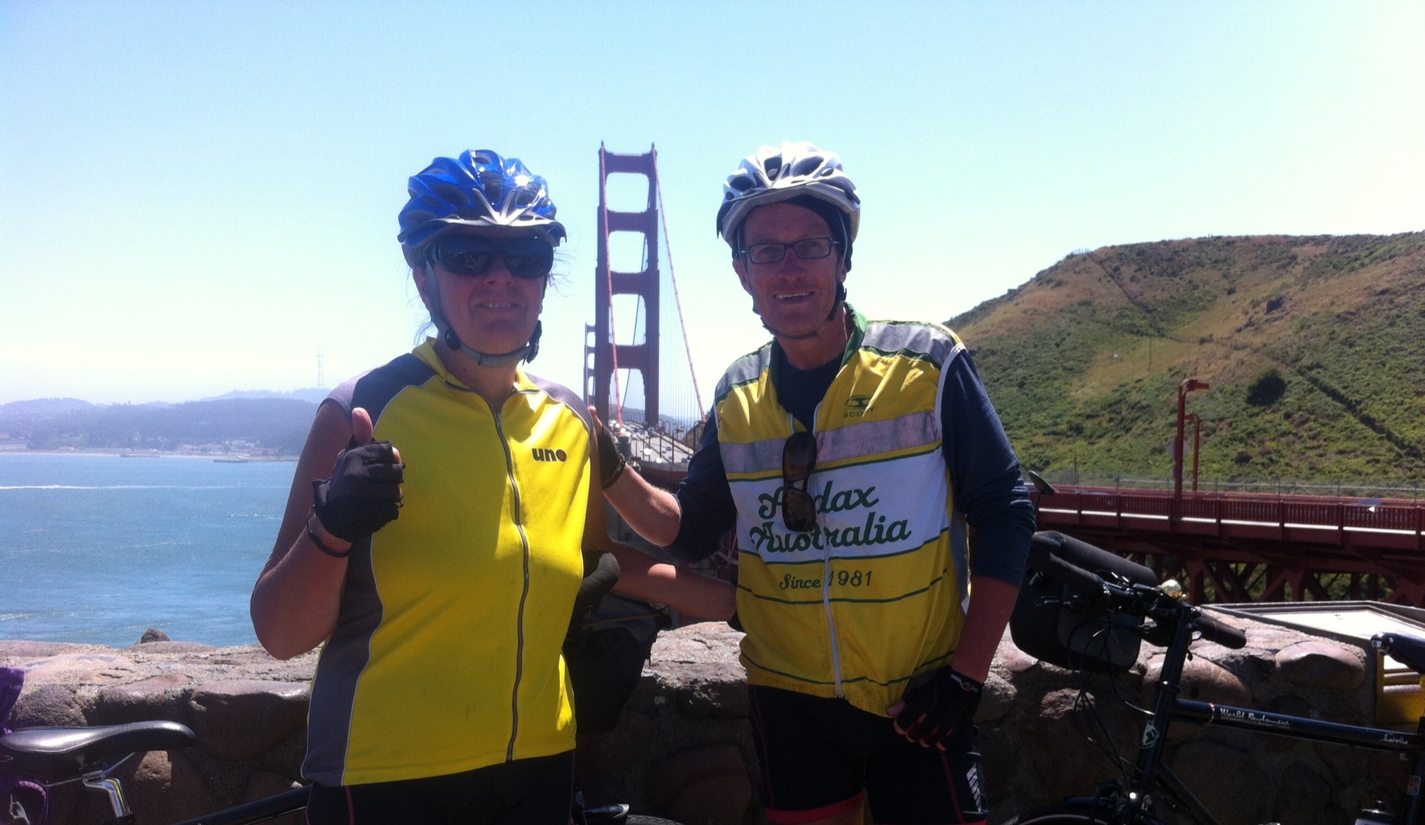 After bidding Liz and Jamie fond farewells we cycled off once more down through the valleys and up across the cliff tops as we made our way to Sausalito where we found a bike path that fed us straight onto the Golden Gate Bridge. Suddenly, in brilliant sunshine, we were climbing up and over the bridge, stopping occasionally to take photos and marvel at the breathtaking view.