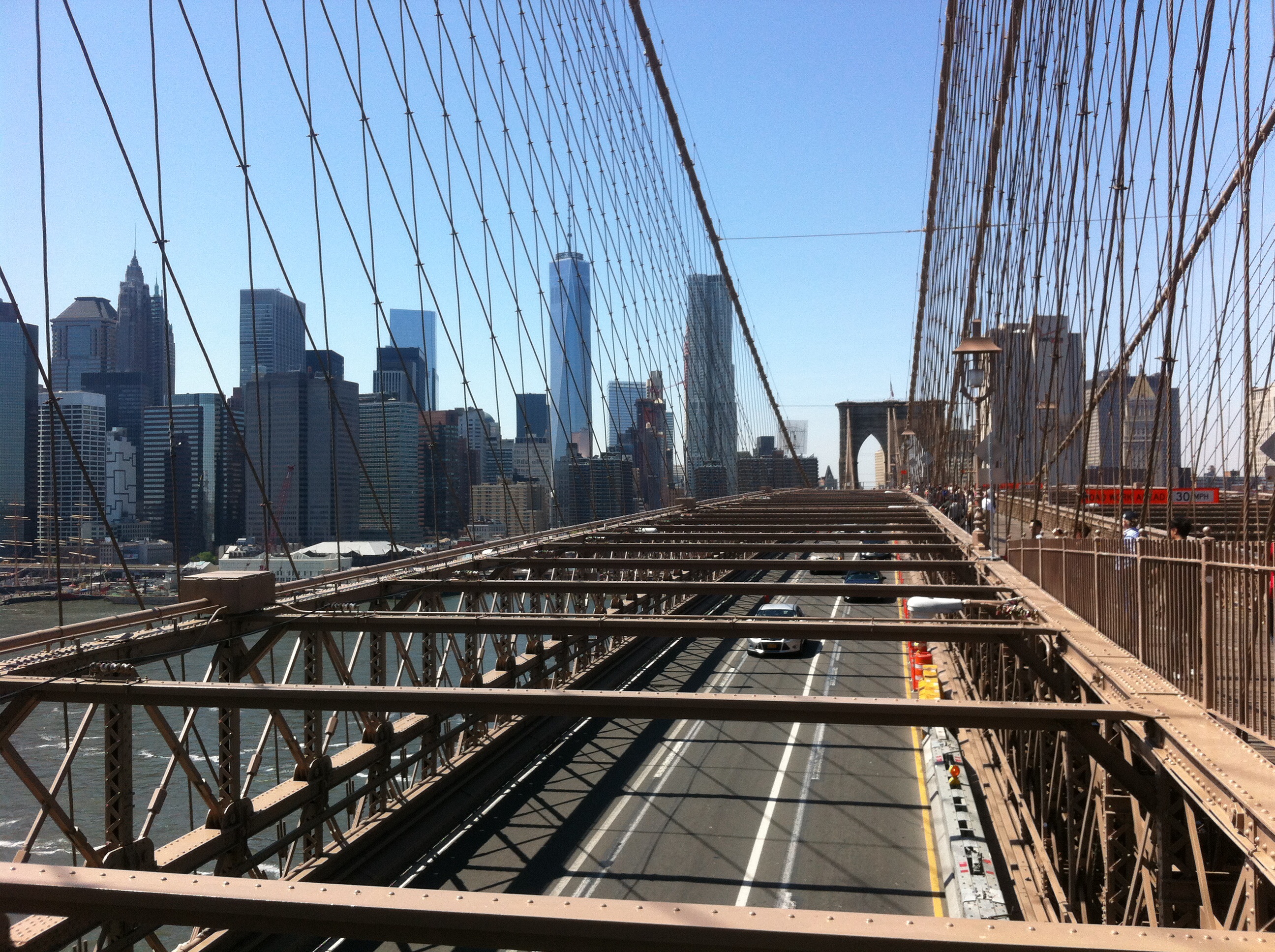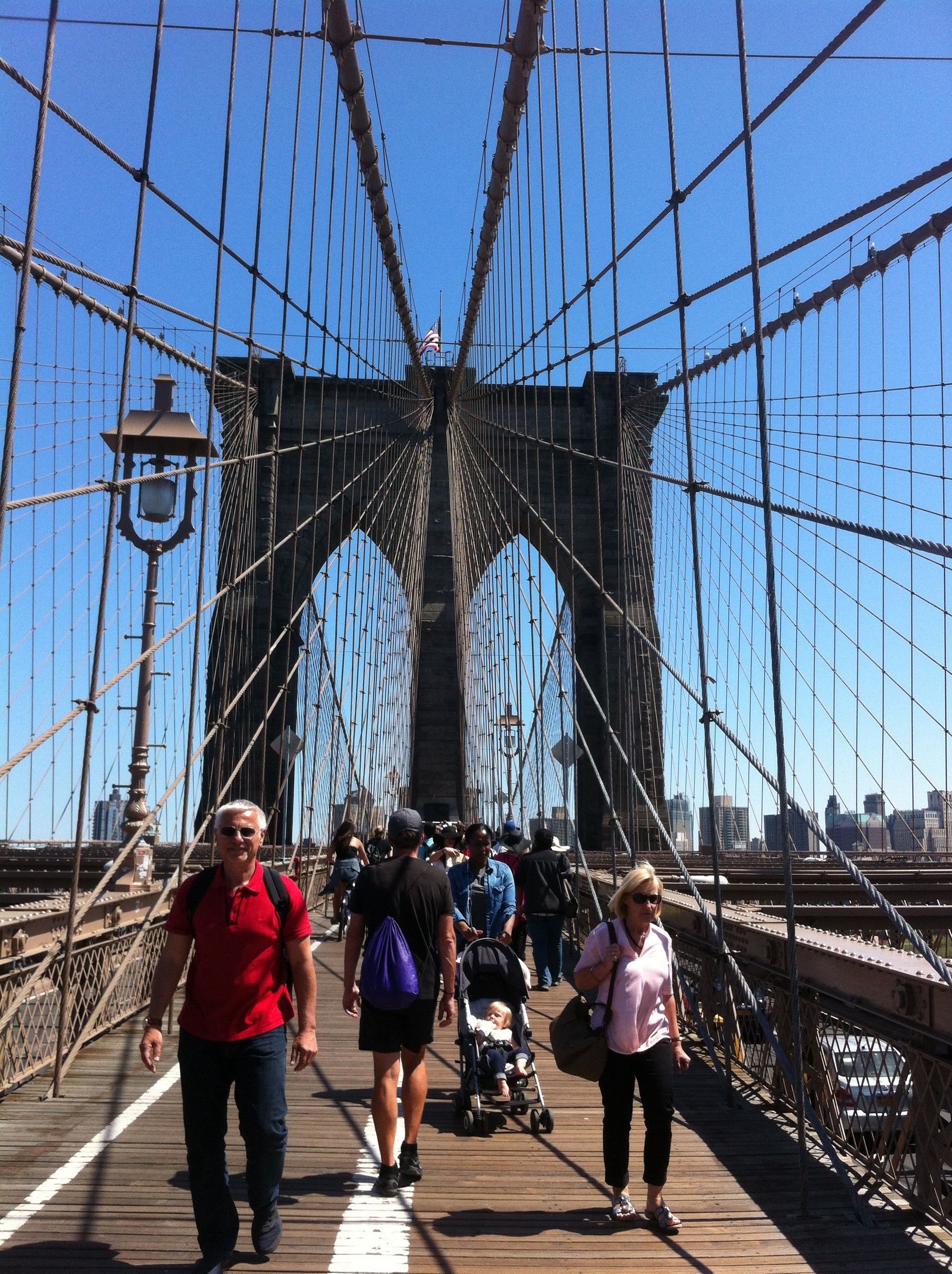 Further out past the Projects and Alphabet City, we take FDR to Drive with its actual genuine bike path running the length of the East River Park all the way to the Brooklyn Bridge past groups of hopeful fishermen, with erect rods and a film crew making Pee-wee Herman’s new Movie: Pee Wee’s Holiday. Like many other pilgrims, we take the opportunity to walk across the Brooklyn Bridge to Dumbo.
