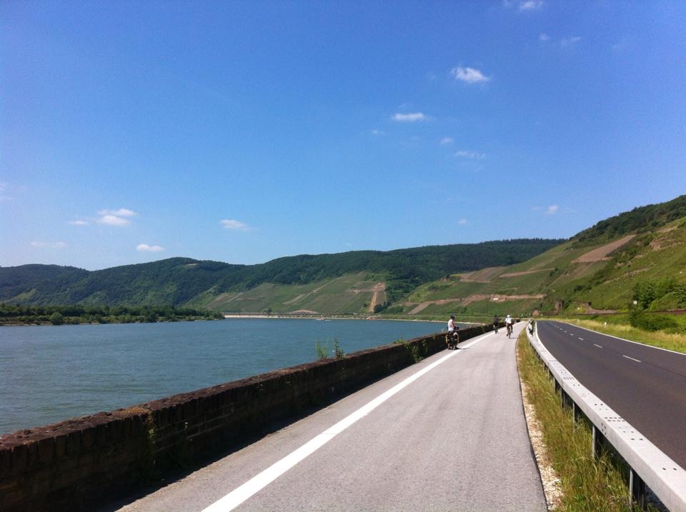 On the steep escarpments above the river, well-tended grape vines, vegetable and fruit crops flourish in a mosaic of color. We meet dozens of other touring cyclists: Sven, a native of Germany, freshly back from a cycle tour of Patagonia in Chile, Craig and Sue an American / Canadian couple cycling the Rhine from the opposite direction to us from Basel to Rotterdam. We exchange tips and information on the path ahead. It’s useful to check out other tourers’ rigs and how they are set up.
