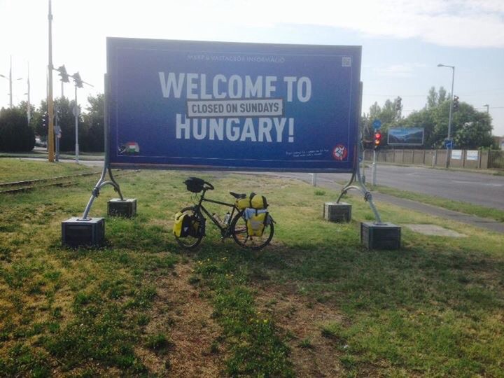 It’s Sunday so Hungary is closed, so says the roadside billboard leading out of Gyor. Not that far from the truth. On the city outskirts, the path becomes patchy before disappearing completely. In Hungary, the route to the Black Sea is a bit sketchy but further East it’s apparently unrealised. We found ourselves on a potholed, rough dirt and sand track that rises uphill. Thankfully it was hot and dry. This goat track would be impassable in wet weather!