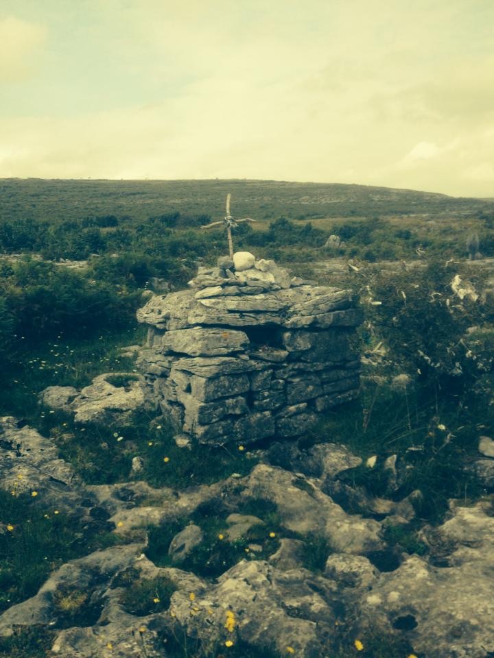 The Burren was first farmed some 6000 years ago. It’s a wild inhospitable place. We spent the day climbing up past the farms on back roads and into the Geo Park a UNESCO site. On this treeless windswept plateau, Medieval cairns and pilgrimage sites abounded. We literally went back in time as we left the bikes and walked to Saint Fachtna’s well. A humble site of worship for pilgrims dating back 800 years or more, I blessed myself with the waters.