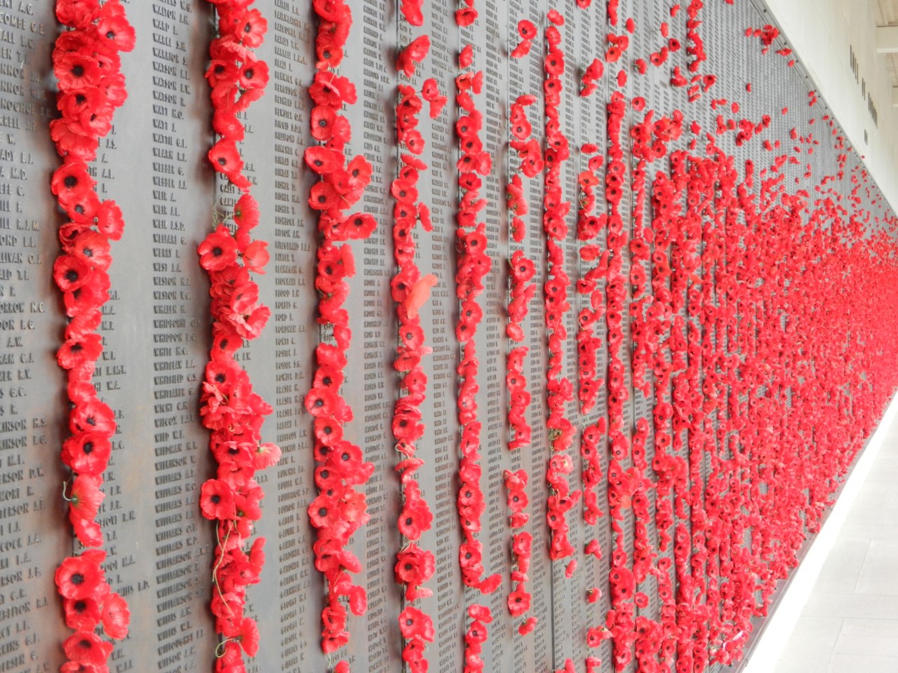 Artificial poppies line the Wall of Remembrance, creating a blood Red Sea.