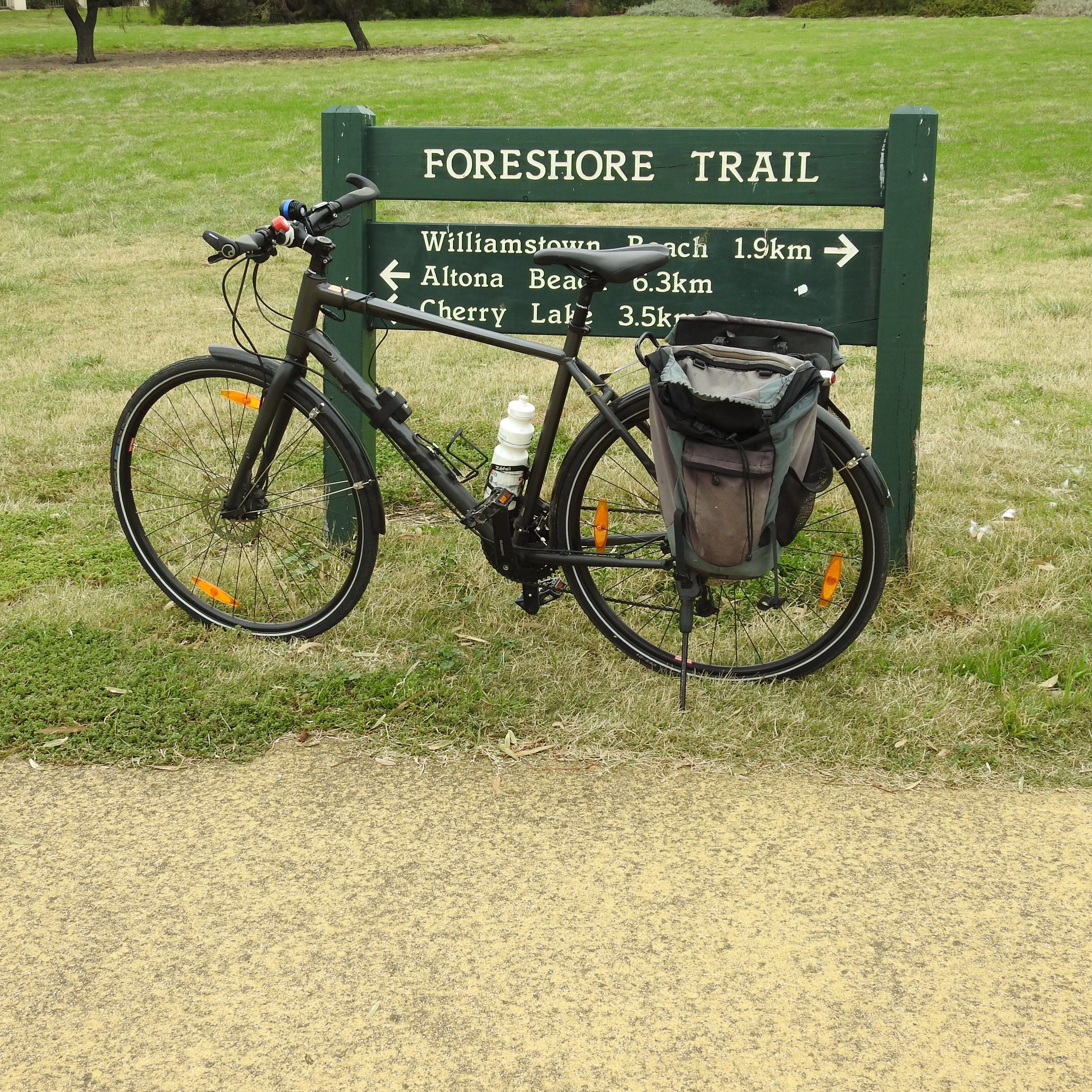 It’s a cyclist’s sky; with light rain clearing I peddle off into a strong westerly wind full of hope. Melbourne is a big city now, with about 5 .5 million people and has hundreds of kilometres of bicycle paths in and around the city.