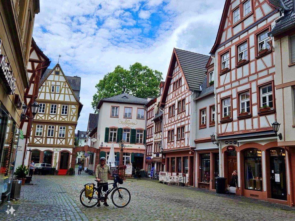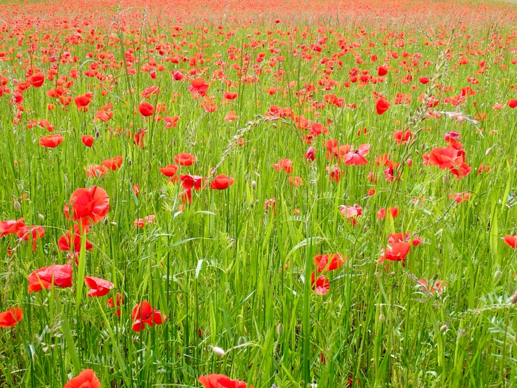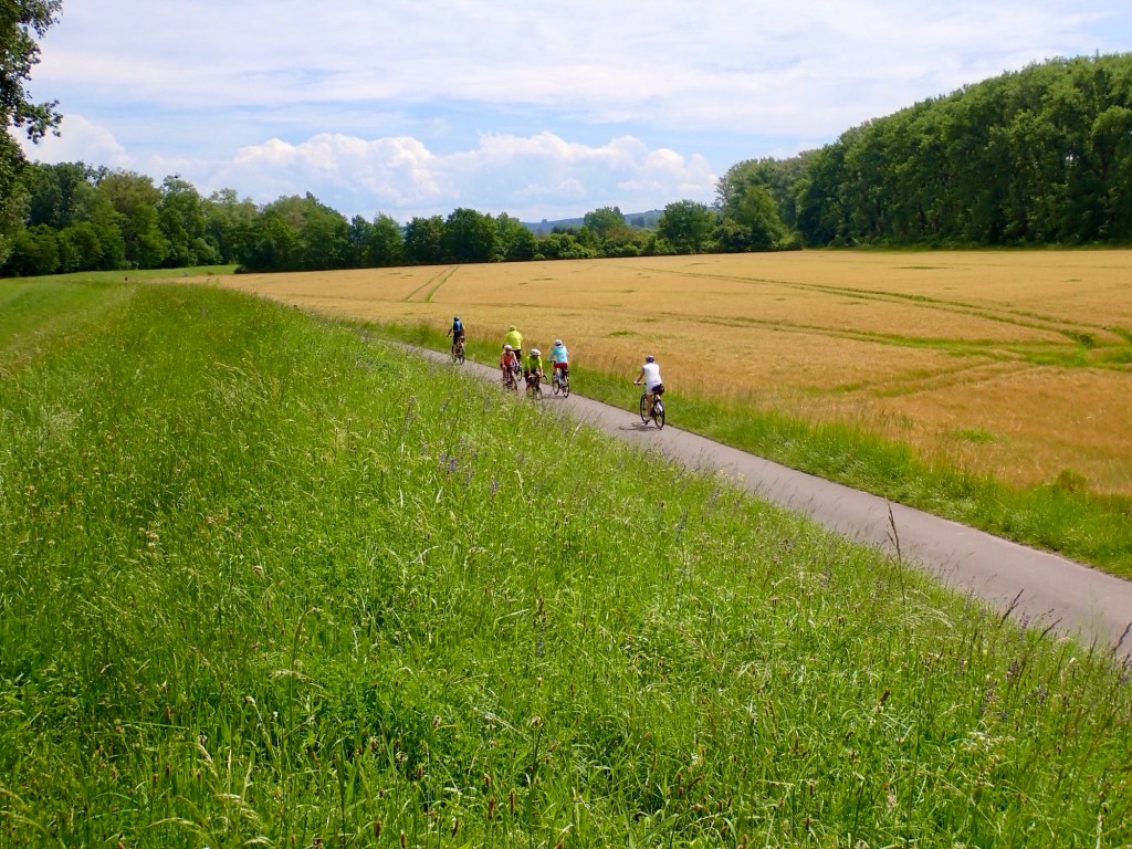 In Bingen we move away from the river into a fertile landscape of grain crops small garden allotments and poppy fields pulsating with life, at times the beauty is incomparable I forgive Cottonwood flowers falling on us like summer snow, even though the result is sometimes clogging up the bikes’ drive train adding to my daily maintenance.